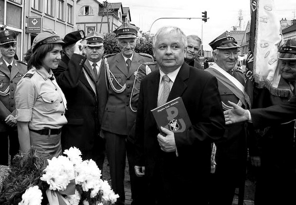 Prezydent Lech Kaczyński pod pomnikiem AK w Garwolinie.